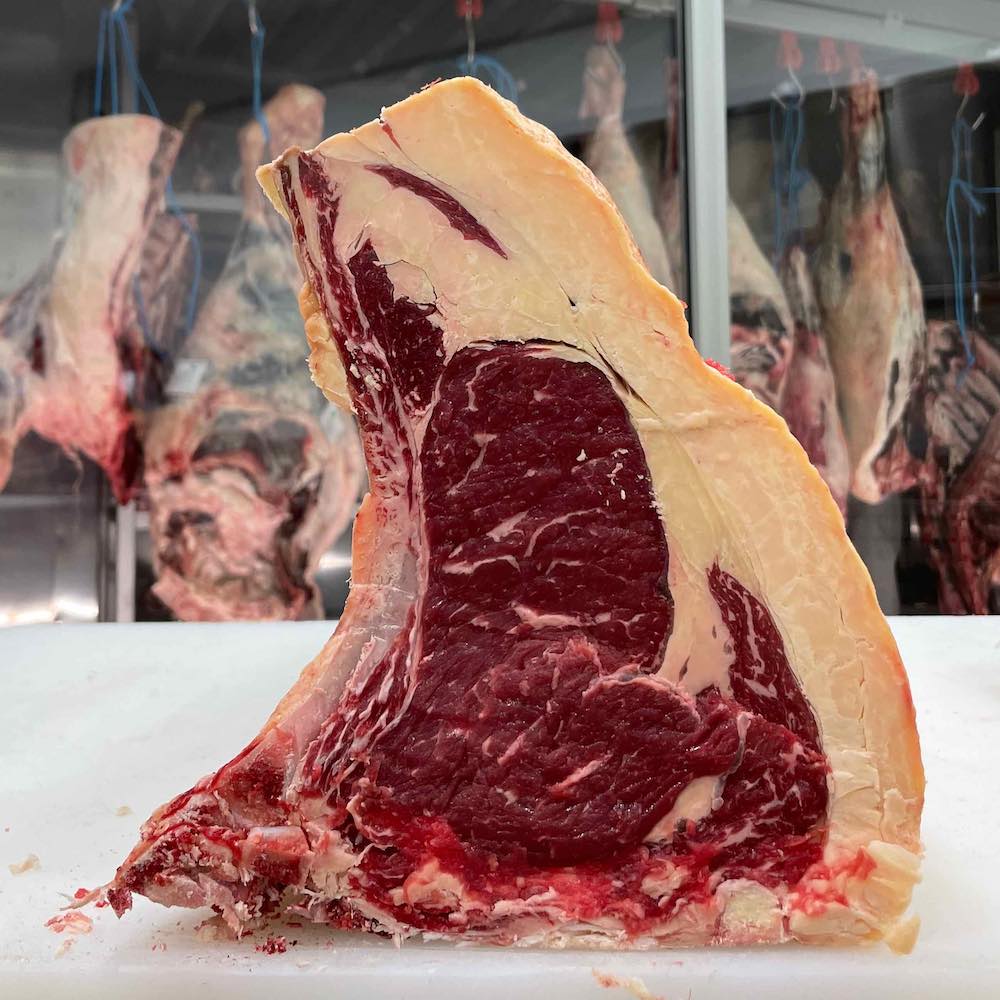 La T-Bone o Fiorentina è uno dei tagli più conosciuti e riconoscibili grazie alla presenza del classico osso a forma di “T”, da cui prende il nome di T-Bone steak, al quale vengono lasciati attaccati il filetto da una parte e il controfiletto dall’altra. In base alla razza questo taglio può dare il meglio di se in cottura "reverse sharing" o sotto vuoto, si consiglia di mangiarla al sangue o al massimo in cottura medium-rare.